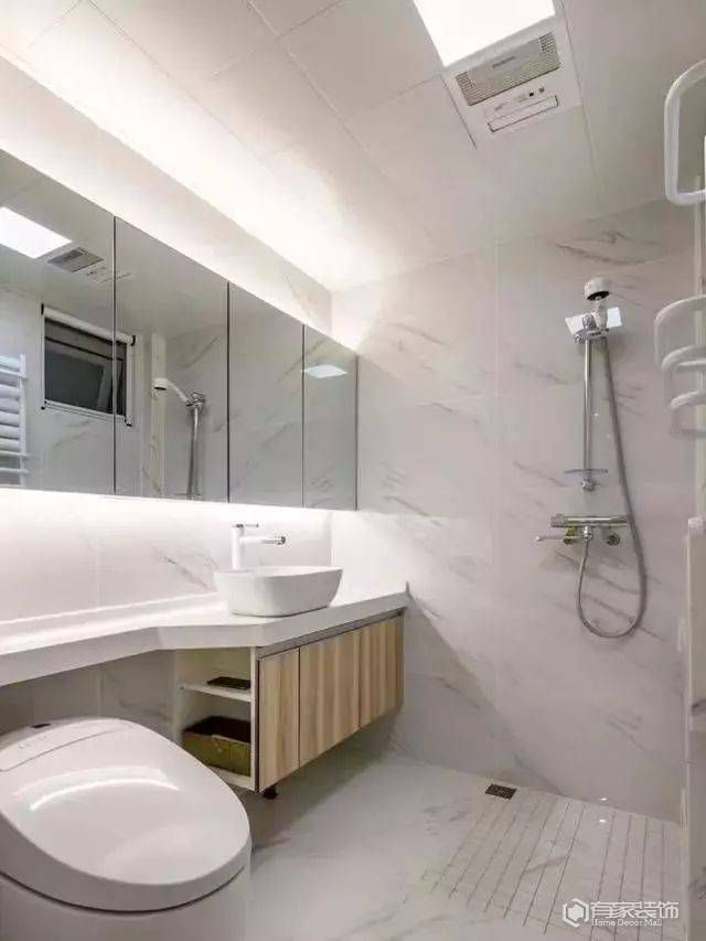 想要衛(wèi)生間看起來(lái)顯大,選擇通透性好的材料是重點(diǎn)。眾所周知,玻璃、金屬等通透性較好的材質(zhì),可以通過(guò)反射光線的原理,讓衛(wèi)生間在視覺(jué)上顯大。因而,這也是為什么鏡子成為了衛(wèi)生間洗漱臺(tái)的標(biāo)配,玻璃門(mén)或者淋浴房的玻璃隔斷等都喜歡使用玻璃元素的根本原因。另外,采用內(nèi)凹式設(shè)計(jì)的壁龕收納,大大增加視覺(jué)上的深度,使墻壁看起來(lái)遠(yuǎn)超真實(shí)的空間距離。在廈門(mén)哪家裝修公司好看來(lái),合理的衛(wèi)生間燈飾設(shè)計(jì),比如說(shuō)吸頂燈+鏡前燈(吊燈、燈帶、筒燈/射燈)+閱讀燈的組合,也是可以起到視覺(jué)上延伸的效果,看起來(lái)空間更大。