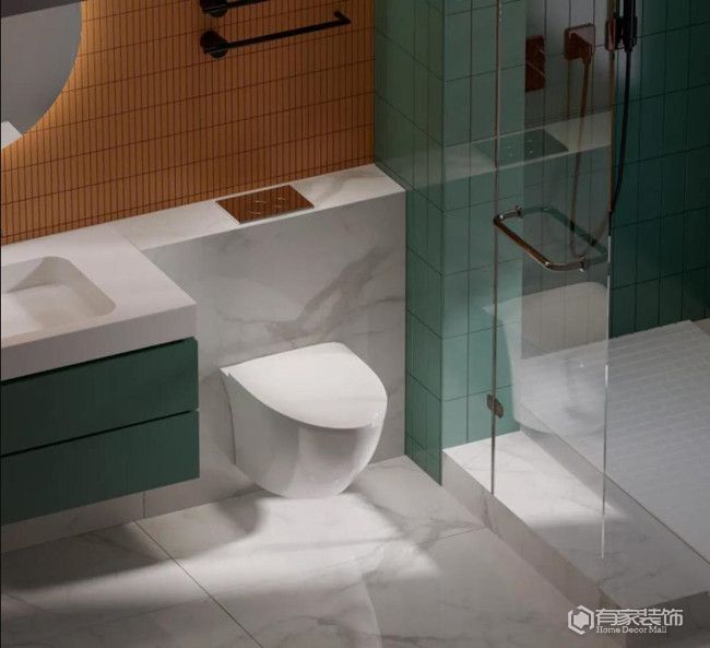 衛(wèi)生間,規(guī)劃鏡柜+墻排設計。鏡柜,隱藏在鏡子背后的柜子。鏡柜的存在,在增加衛(wèi)生間收納的同時,鏡子本身也是起到了視覺上顯大的效果。由于衛(wèi)生間洗漱臺的物品都被隱藏在鏡子背后的柜子給收納了,臺面上再無之前的雜亂感,整體性方面也變得更好了。至于衛(wèi)生間墻排,簡單來說就是洗漱臺和馬桶的排水從墻體內(nèi)部走,將排水管道隱藏起來。衛(wèi)生間做墻排有哪些優(yōu)點?減少衛(wèi)生死角是核心優(yōu)勢。相較于傳統(tǒng)地排,墻排的排水管懸空安裝,沒有衛(wèi)生死角,整體顏值也更高。衛(wèi)生間墻排,對于材料質(zhì)量要求高,同時施工難度也比較大。