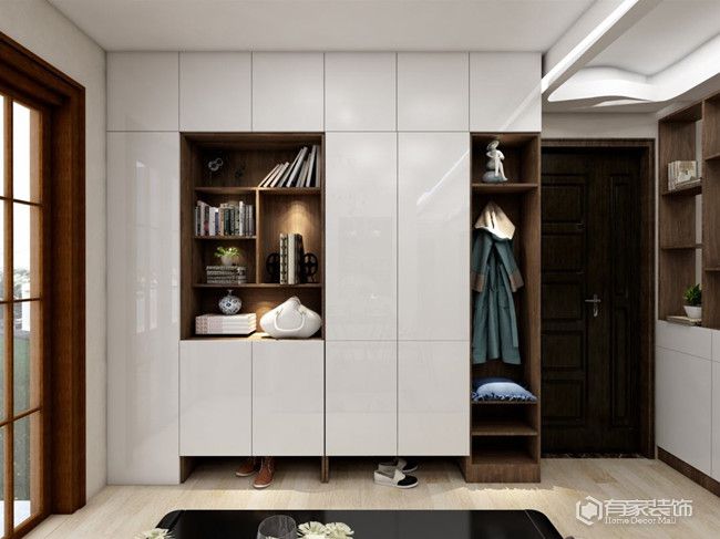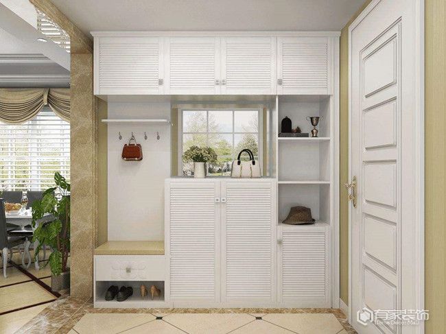 玄關(guān)裝修要有哪些先見之明?換鞋凳+透氣孔。玄關(guān)的主要功能,是用于存放一家人的鞋子。所以,玄關(guān)柜內(nèi)部格局要做好。為了充分利用空間且擁有更多的容納量,玄關(guān)柜也要做通頂?shù)亩ㄖ乒?。同時,玄關(guān)柜要預(yù)留或者單獨規(guī)劃一個換鞋凳。家有老人、小孩或者孕婦等弱勢群體,換鞋凳瞬間成為家里的香饃饃,堪稱居家生活的人性化設(shè)計。另外,為了避免鞋子長時間在密閉空間發(fā)酵,玄關(guān)柜第二層空間的柜門,記得留有透氣孔,可以規(guī)避玄關(guān)有異味的情況。玄關(guān)底部,建議做留空10-15厘米,用于放置常穿的鞋子,減少鞋子到處亂放的問題。
