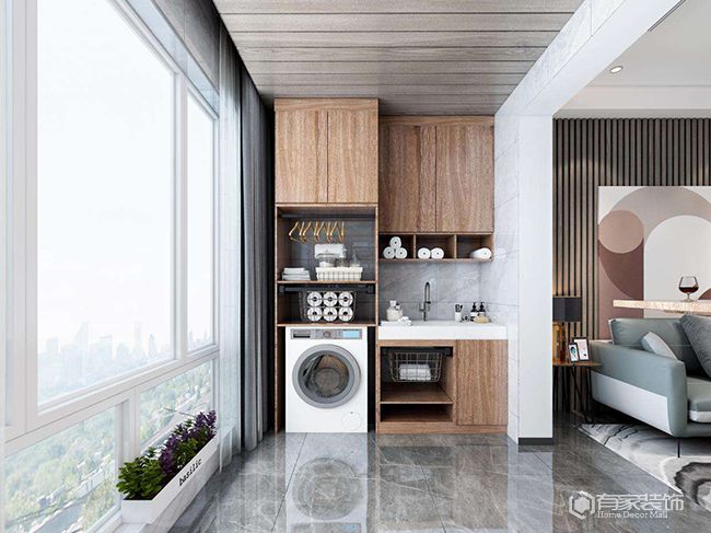 關(guān)于陽臺柜裝修,水槽寬度建議預(yù)留40-80cm,儲物柜深度建議為40-60cm,清潔劑開放柜寬度建議為30-40cm。其他儲物柜寬度,可根據(jù)廈門裝飾公司需求在40-80cm之間選擇??紤]將吊柜、開放格、內(nèi)嵌洗衣機、地柜等元素進(jìn)行組合設(shè)計,滿足不同的收納和使用需求。陽臺柜應(yīng)做到頂設(shè)計,以充分利用垂直空間并減少衛(wèi)生死角。同時,在柜子里加裝燈帶或感應(yīng)燈,方便拿取物品。
